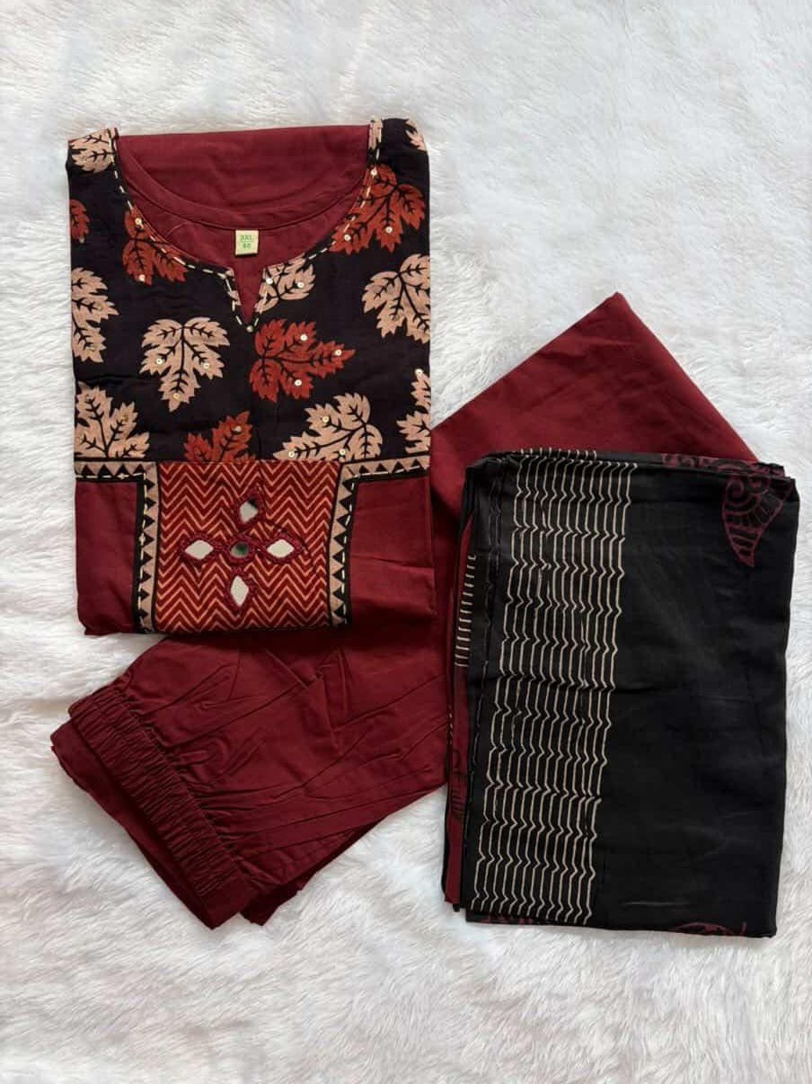COTTON SLITTED KURTI WITH BOTTOM AND DUPATTA