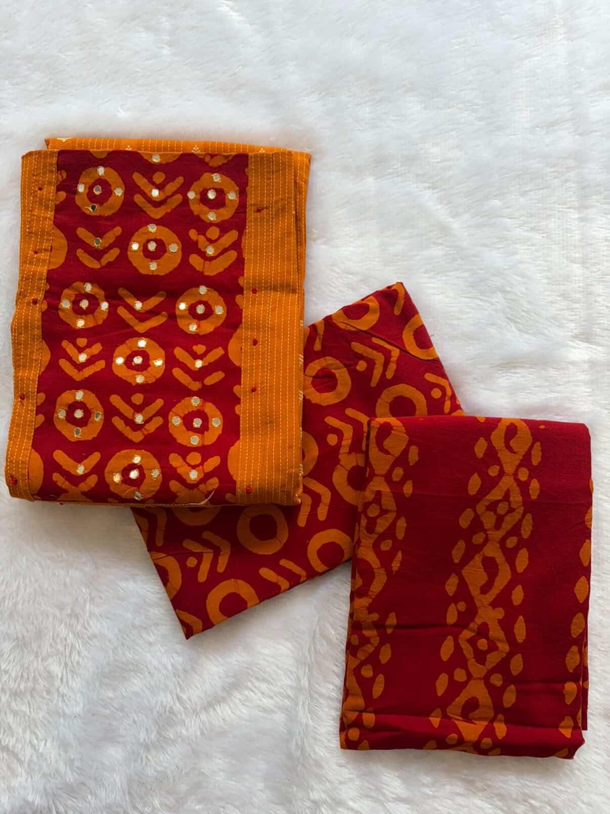 UNSTITCHED SALWAR SET – KANTHA COTTON WITH BATIK PRINT BOTTOM AND DUPATTA