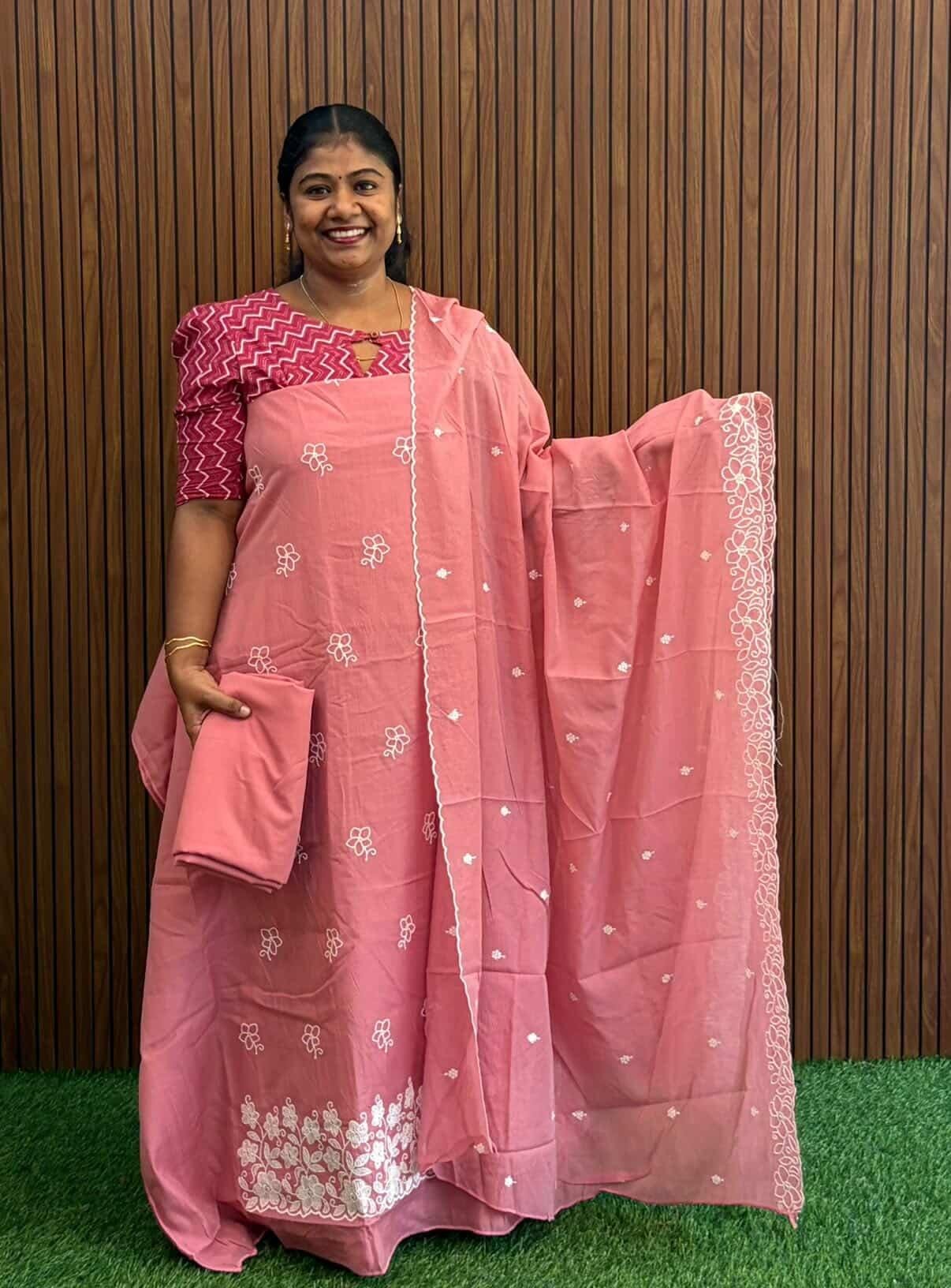 SEMI MUL CHANDERI UNSTITCHED SALWAR SET